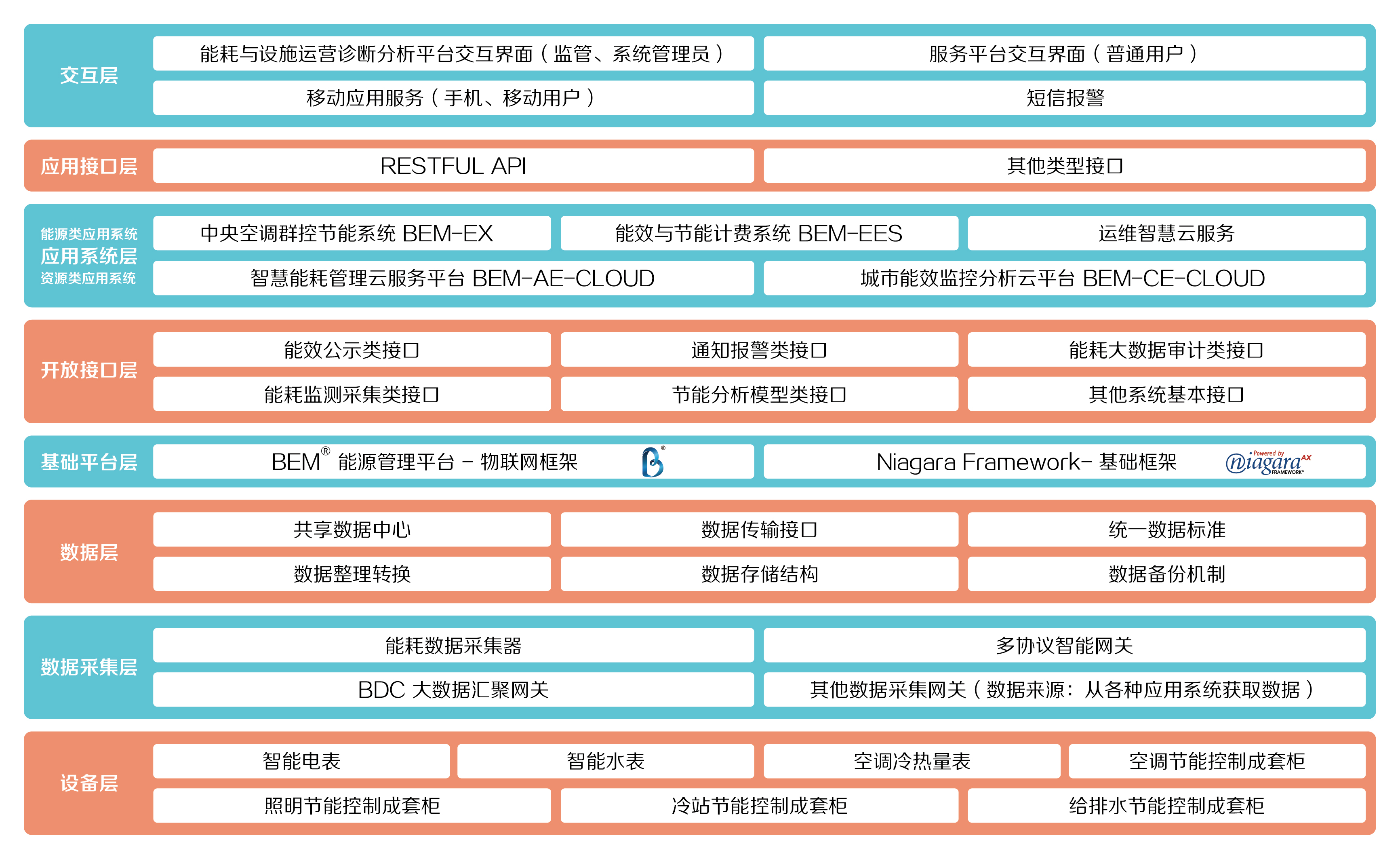 贝沐能源管理平台(BEMEX)以具有开创性的 Niagara 体系架构为核心 ,基于物联网架构的分布式综合节能平台。